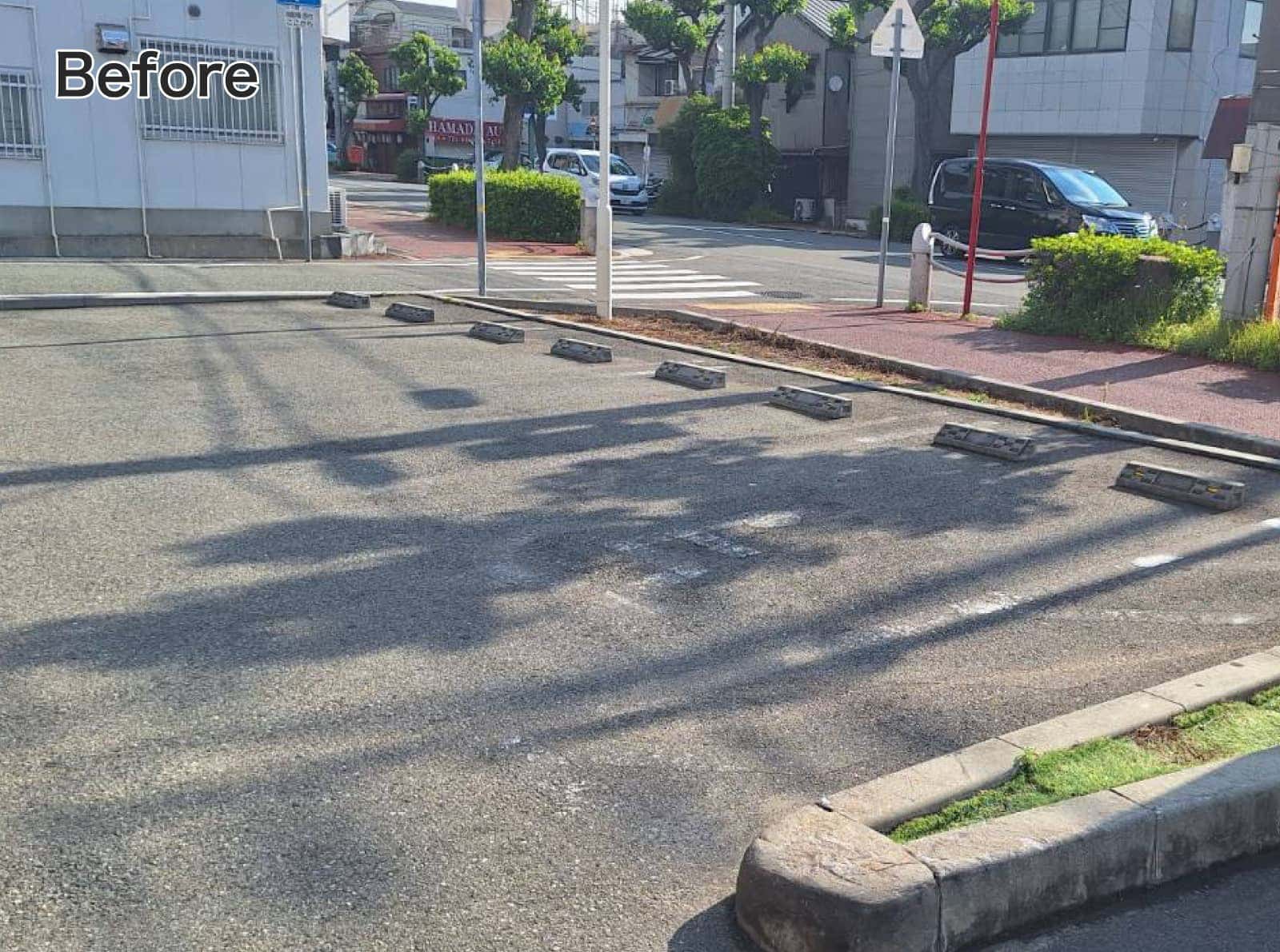 車止めブロックの取り替え・カラー舗装も